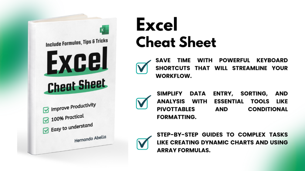 Excel Cheat Sheet: Include Formulas, Tips & Tricks$15$15https://schema.org/InStockusdHernando AbellaHernando AbellaAdd to cartPagesSize2.86 MBLength77 pagesAdd to wishlist New wishlistShareShare on XShare on Facebook Copy linkCopy product URL